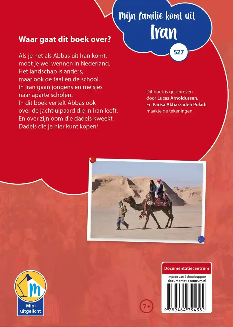 Als je net als Abbas uit Iran komt, moet je wel wennen in Nederland. Het landschap is anders, maar ook de taal en de school. In Iran gaan jongens en meisjes naar aparte scholen. In dit boek vertelt Abbas ook over de jachtluipaard die in Iran leeft. En over zijn oom die dadels kweekt. Dadels die je hier kunt kopen!