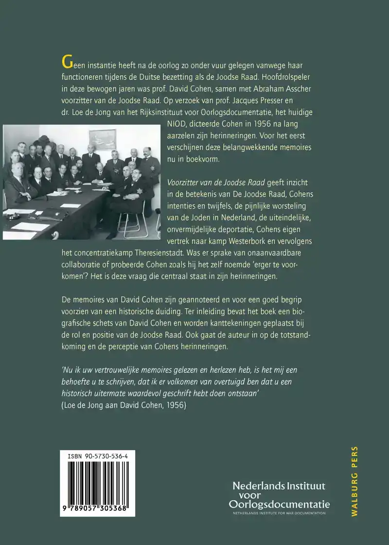 Geen instantie heeft na de oorlog zo onder vuur gelegen vanwege haar functioneren tijdens de Duitse bezetting als de Joodsche Raad. Hoofdrolspeler in deze bewogen jaren was prof. David Cohen, samen met Abraham Asscher voorzitter van de Joodsche Raad. Op verzoek van prof. Jacques Presser en dr. Loe de Jong van het Rijksinstituut voor Oorlogs-documentatie, het huidige NIOD, dicteerde Cohen in 1956 na lang aarzelen zijn herinneringen. Voor het eerst verschijnen deze belangwekkende memoires nu in boekvorm.
