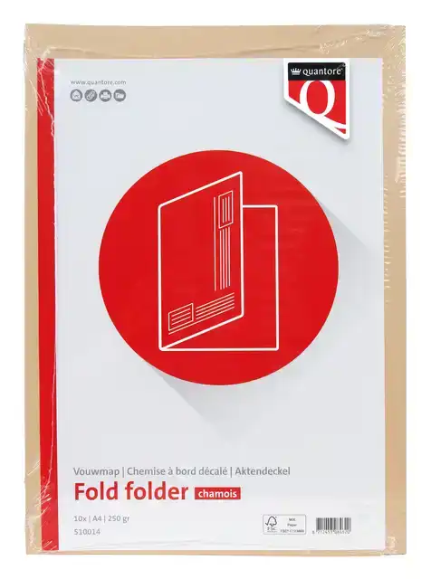 - Houd je documenten overzichtelijk en duurzaam opgeborgen met de vouwmap Quantore A4 ongelijke zijde 250gr beige. Deze stevige map is vervaardigd uit 250 grams manillakarton en is zowel FSC- als Blauwe Engel-gecertificeerd, wat betekent dat het karton 100% gerecycled én milieuvriendelijk is. Met het A4-formaat van 218/233x320mm is de map perfect geschikt voor het bewaren van standaard documenten. De ongelijke zijde zorgt voor extra gemak bij het openen en bladeren. Ideaal voor gebruik op kantoor, in archieven of thuis. Verpakt per 5 pakken van 10 stuks in een omdoos – klaar voor dagelijks gebruik.Kenmerken: